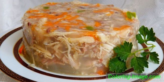 - Закипілий бульйон процідити, залити акуратно м'ясної шар, дати годину постояти. Прибрати для подальшого застигання в холодильник, а взимку - на балкон.